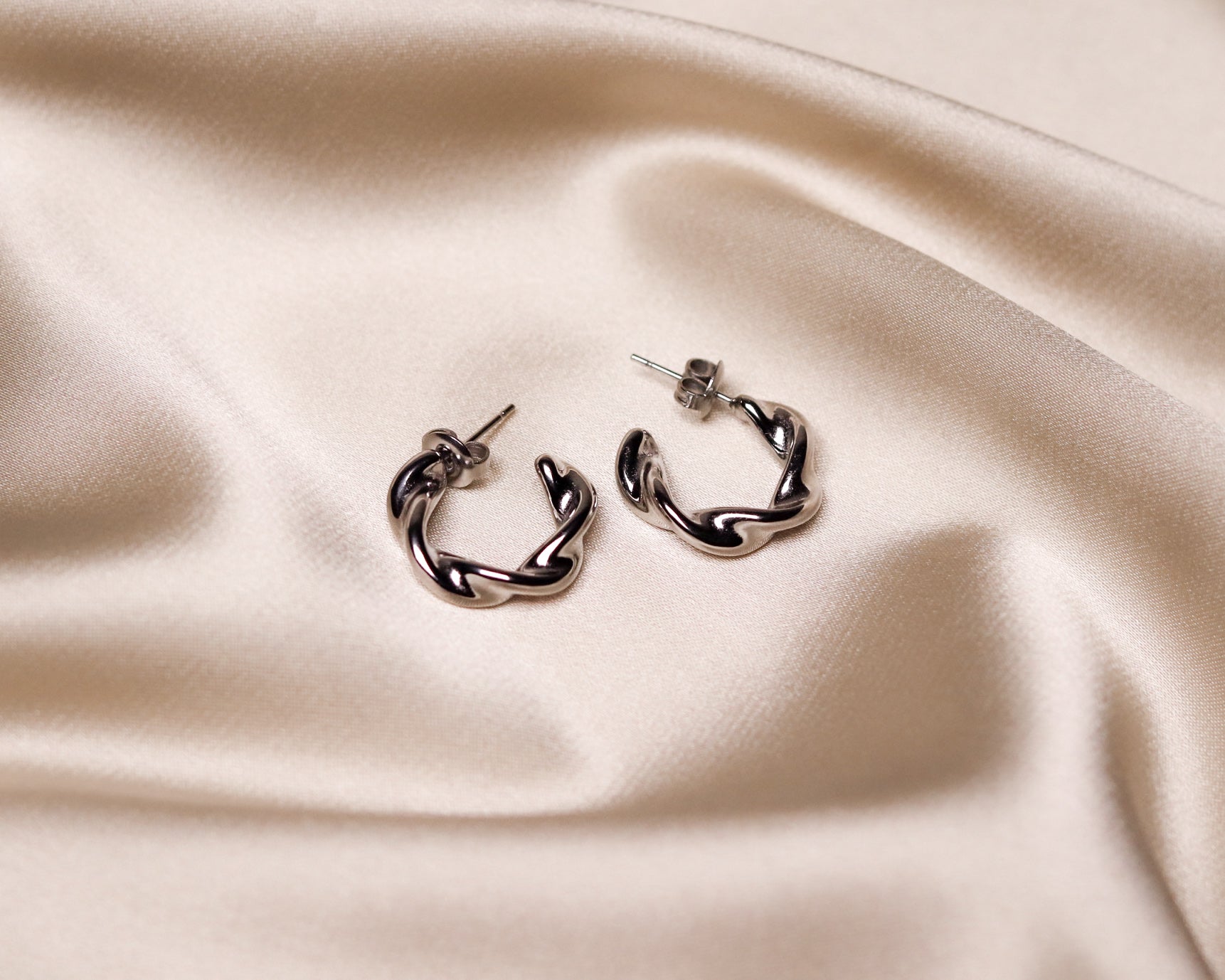 Hoops med en mjukt vågformad design som ger ett unikt och stilfullt uttryck. Formen gör dem till ett par som syns lite extra och ändå går att bära varje dag. Vackra ensamma och fina i kombination med enklare örhängen för en mer personlig look.